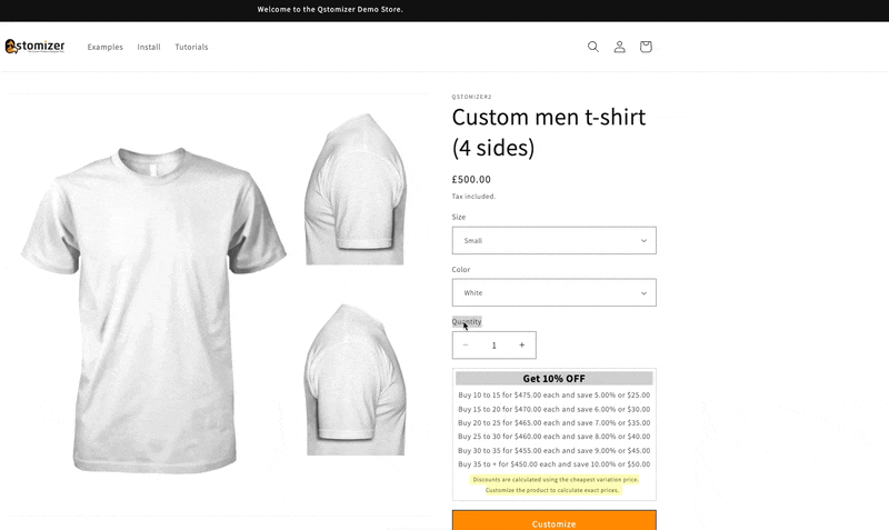 This way, the customer will only have the option to set the desired quantity within the Qstomizer customization interface, ensuring the data is correctly integrated with the price calculations.